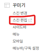 티스토리 관리자 페이지에서 꾸미기 > 스킨 편집에 들어갑니다.