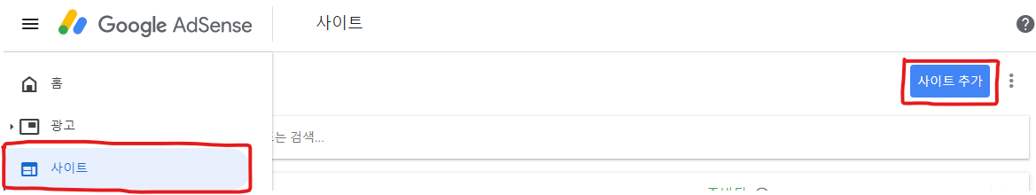만약 사이트 추가가 안되어 있다면 사이트 URL을 입력해서 사이트를 먼저 추가합니다.